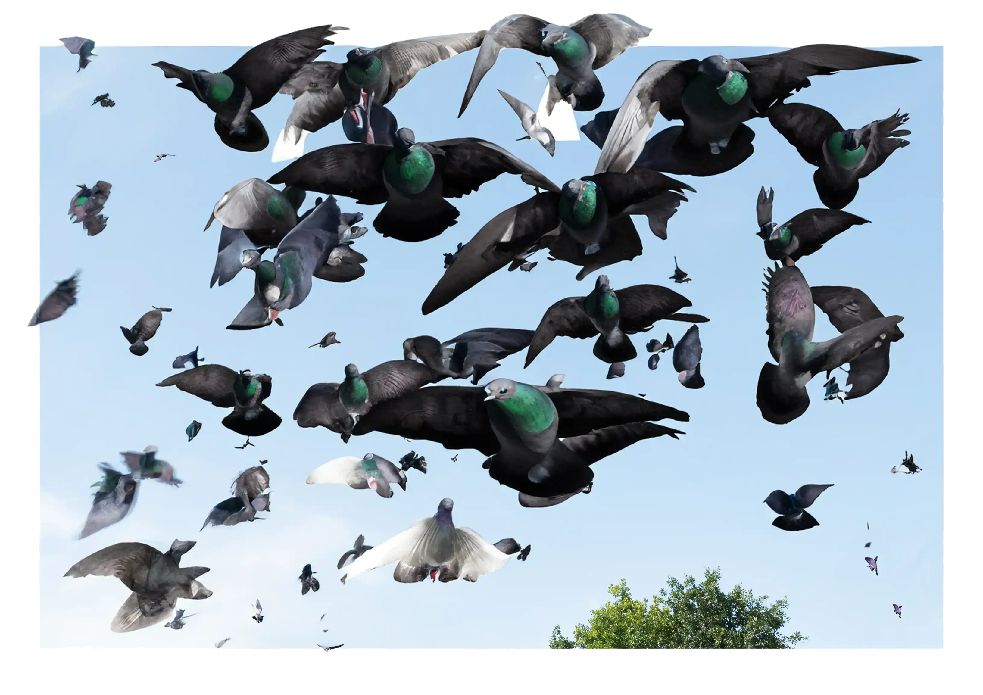 As I progressed, though, I realized the most chaotic images in the book weren’t chaotic enough for the website. I started adding more pigeons.